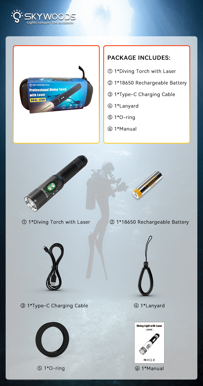 Explore the Skywoods D6GL 1200 Lumen Dive Torch with Laser
